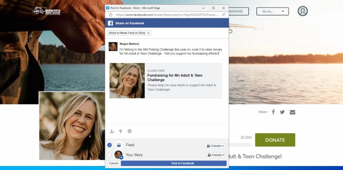 Fundraising is easier than you think! Share your fundraising efforts with friends and family on Facebook.